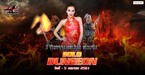 RAN Online สังเวียนเดือดศึกสามสถาบัน  เปิดดันเจี้ยนใหม่สำหรับสายโซโล่ พร้อม 3 กิจกรรมสุดมันส์ ต้อนรับ SOLO DUNGEON ยิ่งเล่นยิ่งได้! ตั้งแต่วันนี้ – 5 เมษายน 2561 อ่านเพิ่ม คลิกที่นี่ กิจกรรม Welcome NewUser ต้อนรับนักเรียนใหม่ สมัครไอดีเกมตั้งแต่ วันนี้- 31 มีนาคม2561 รับไอเทมเพียบ อ่านรายละเอียด คลิกที่นี่ และกิจกรรม Welcome Back ต้อนรับการกลับมาของเหล่านักเรียนด้วยกล่อง Welcome back box! ตั้งแต่วันนี้ – 27 มีนาคม 2561 อ่านรายละเอียดเพิ่มเติม คลิกที่นี่