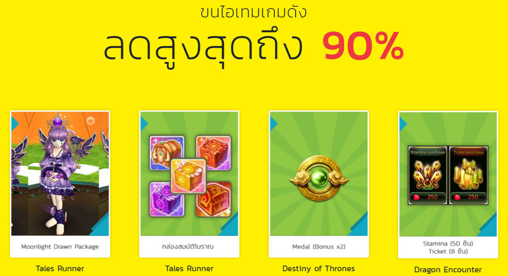 ซื้อไอเทมเกมดังราคาพิเศษ ลดสูงสุดถึง 90%
