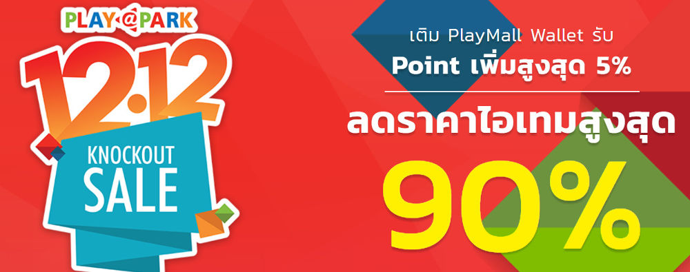 พลาดแล้วพลาดเลย “PLAYPARK 12.12 KNOCKOUT SALE” 1 วันช็อปมันส์หยุดโลก เริ่มน็อกพร้อมกัน วันนี้ (12 ธันวาคม 2560) เวลา 12:00 น. สามารถติดตามรายละเอียดโปรโมชั่นของแต่ละเกมเพิ่มเติมได้ที่