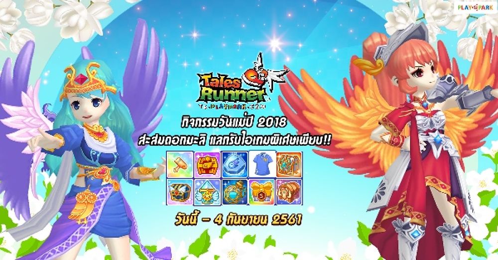 Tales Runner จัดกิจกรรมต้อนรับวันแม่เพื่อนักวิ่งทุกคน  เพียงผู้เล่นเล่นสนามใดก็ได้ในเกม Tales runner โดยภายในเกมจะทำการสุ่มตกไอเทมดอกมะลิและให้ผุ้เล่นนำไอเทมดอกมะลิมาแลกของรางวัลจากร้านค้าแลกเปลี่ยน ตั้งแต่วันนี้  - 4 กันยายน 61 รายละเอียดเพิ่มเติม (คลิกที่นี่)  และนอกจากนี้ยังมีกิจกรรมอื่นๆอีกในแฟนเพจสามารถติดตามรายละเอียดข่าวสารได้ที่ Playpark Tales Runner