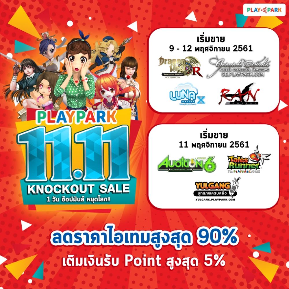 นอกจากนี้ เตรียมตัวกันให้พร้อมมหกรรมลดราคาครั้งยิ่งใหญ่วนกลับมาอีกแล้ว กับ PLAYPARK 11.11 KNOCKOUT SALE  รวมพล 7 เกมสุดปัง ลดราคาสูงสุด 90% เตรียมช๊อปมันส์หยุดโลกเริ่ม 9 พฤศจิกายนนี้!! สามารถติดตามรายละเอียดเพิ่มเติมได้(คลิกที่นี่)