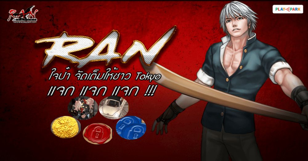 RAN Online สังเวียนเดือด ศึกสามสถาบัน ใจป๋า จัดเต็มให้ชาว Tokyo แจก แจก แจก!!! RAN PP ใจป๋า จัดหนัก แจกฟรี ให้ชาว Tokyo งานนี้แจก แจก แจก แจก และแจกเท่านั้น!! แค่เข้าเกม RAN ทุกเสาร์-อาทิตย์ ตลอดเดือนพฤศจิกายน 2561 รายละเอียดเพิ่มเติม (คลิกที่นี่) และ กิจกรรมโบว์แดง เดือนพฤศจิกายน 2561 และอีกหนึ่งกิจกรรม กิจกรรมโบว์แดง พิเศษต้อนรับเทศกาลลอยกระทง จัดหนัก เปิดโบว์แดง 700% เพิ่มดรอปไอเทม 200% กิจกรรมเริ่ม 19 – 25 พฤศจิกายน 2561 เวลา 10.00 น. รายละเอียดเพิ่มเติม (คลิกที่นี่)