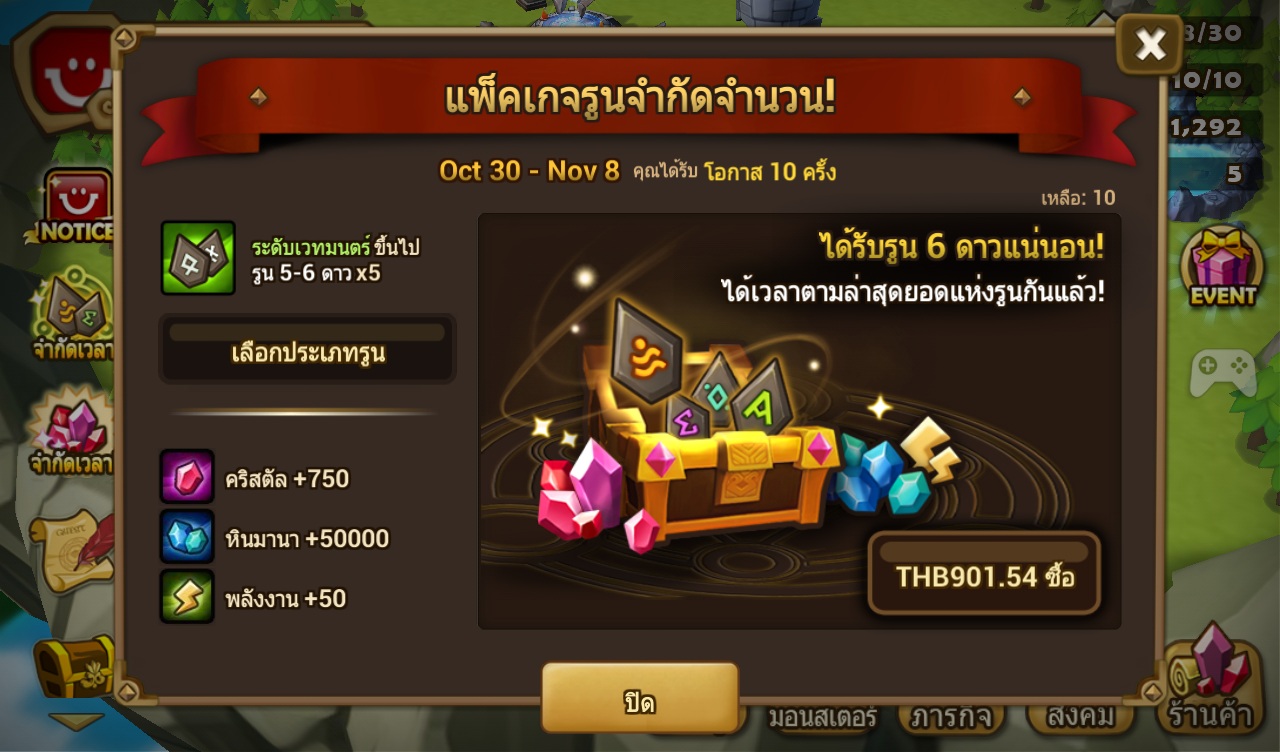 1.สุ่มรูน 5 – 6 ดาว ระดับเวทมนต์ขึ้นไป 5 ชิ้น สามารถเลือกประเภทรูนได้