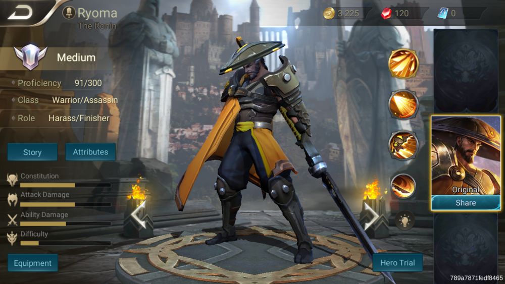 - เรียวมะ กระโดดม้วนตัว ในทิศทางตรงกันข้ามกับที่เลือก ( เหมือน Nakrothที่ต้อง กดพุ่งทิศทางตรงข้าม) ทำดาเมจกายภาพ 250 / 300 / 350 / 400 / 450 / 500 ใส่ศัตรูในระยะทาง ถ้าเรียวมะพุ่งโดนฮีโร่ศัตรู สกิลนี้จะลดคูลดาวน์ลง 3 วินาที ผลสกิลนี้ไม่สามารถทับซ้อนได้