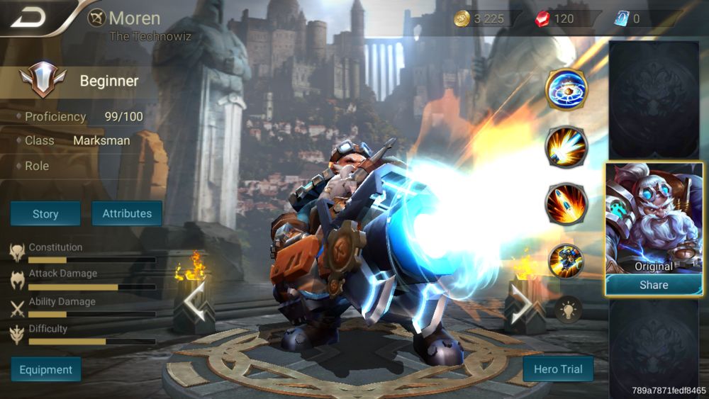 - ลุง Moren ยิงกระสุนอัดศัตรู ทำให้กระเด็นถอยหลังไป และ ทำดาเมจกายภาพ 150 / 200 / 250 /300 /350 /400 วินาที และ ลดความเร็วเคลื่อนที่ศัตรู 30 % เป็นเวลา 2 วินาที