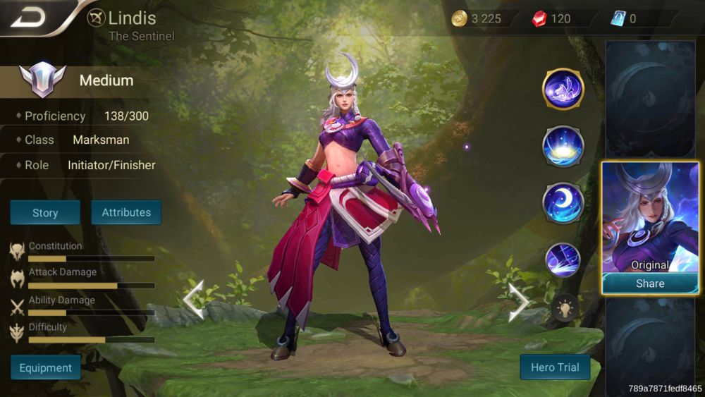 - Lindis ฉายแสงจันทราเป็นวงกว้าง เปิดแมพและเผยศัตรูที่อยู่ในระยะทั้งหมด ( รวมถึงฮีโร่ที่ หายตัวอย่างลิง และ แบทแมท) เป็นเวลา 5 วินาที
