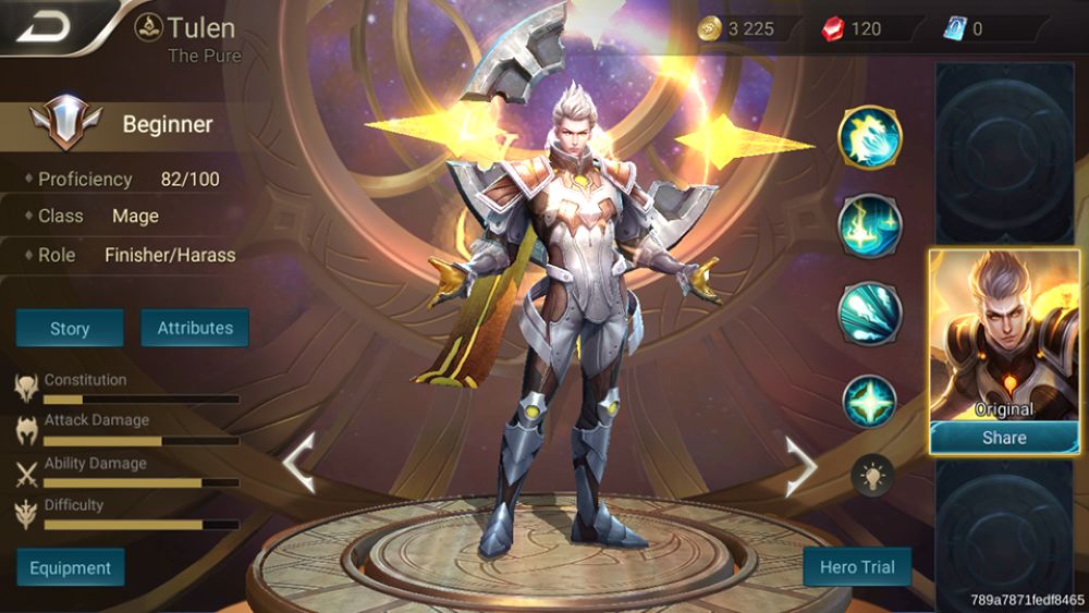 - การเพิ่งพลังการโจมตีปกติของเขา จะทำ True Damage และ ลดคูลดาวน์ สกิล 1 และ 2 ลง 1 วินาที