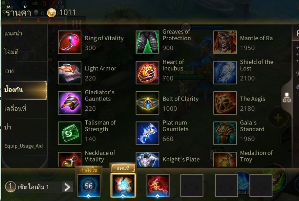 ไอเทมกดใช้งาน จะขึ้นเป็นปุ่ม เหนือ สกิลอัลติเมท