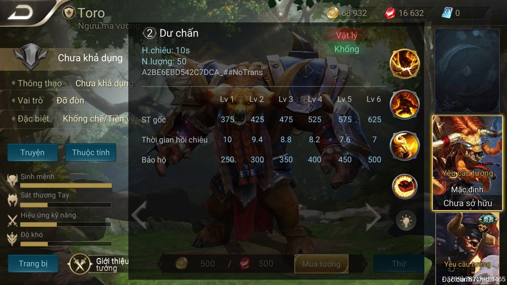 - เกราะดูดซับความเสียหาย : 250/300/350/400/450/500 → 250/300/350/400/450/500 (+ 2% HP สุงสุด)