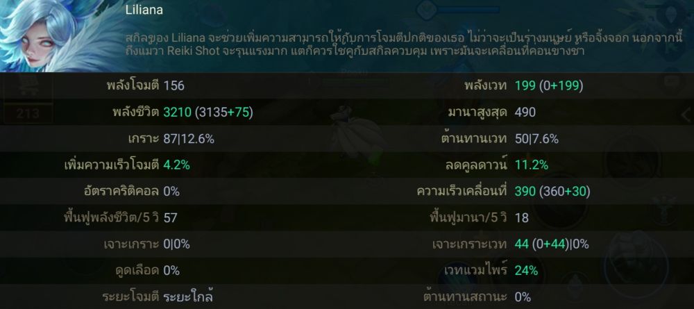 ร่างคน : Liliana ยิงกระสุนเวทไปใน ณ จุดที่กำหนด สร้างความเสียหายเวท 500 / 580 / 660 / 740 / 820 / 900 (+โบนัสพลังเวท) แก่ศัตรูในบริเวสณ หากสกิลนี้โจมตีโดนฮีโร่ 2 ตัวขึ้นไป จะทำให้การโจมตีปกติสร้างความเสียหายเวท เท่ากับ 5% (+1% ทุก 120 พลังเวท) ของ HP สูงสุดของศัตรู- Tip : ยิ่งศัตรูเลือดมาก เราโจมตีสกิลนี้ใส่แล้วตีปกติต่อจะยิ่งมีดาเมจเพิ่ม