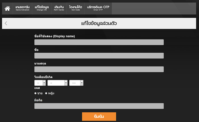 * การเลือกเพศที่หน้าสมัครไอดีนั้นจะมีผลกับเพศของตัวละครภายในเกมด้วย