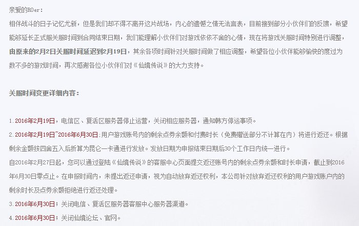 เพื่อนำเกมนี้มาเปิดให้บริการต่อ แต่ด้วยเพราะเป็นเกมที่เก่าและแพทซ์อัพเดทไม่ได้ต่อเนื่องเหมือนเกมอื่นๆเท่าไหร่ ทำให้จำนวนผู้เล่นช่วงระยะหลังลดลงมาก จึงมีการตัดสินใจยุติการให้บริการเซิร์ฟเวอร์นี้ลง โดยจะยุติให้บริการในวันที่ 19 กุมภาพันธ์นี้ ส่วนบ้านเราก็ยังได้รับความนิยมอยู่ระดับหนึ่ง อาเจ๊นัทบางทียังกลับเข้าไปเดินเล่นอยู่เลย