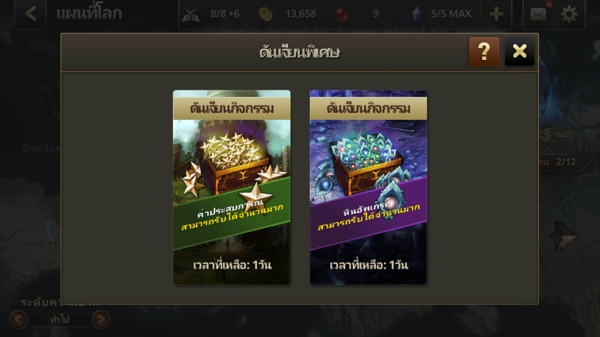 จะพลาดได้ยังไงกับดันเจี้ยนพิเศษ ดันเจี้ยนพิเศษในเกมนี้จะสุ่มมาเรื่อยๆเหมือนเป็น event ประจำเกม มีทั้งแจก EXP แจกหินอัพเกรด แจกตัวละคร แต่ก่อนจะเข้าดูระดับพลังรบของตัวเองด้วยนะ เพราะดันเจี้ยนพวกนี้ค่อนข้างที่จะยากเอามากๆ ระวังเข้าไปจะได้กินดินแทน EXP