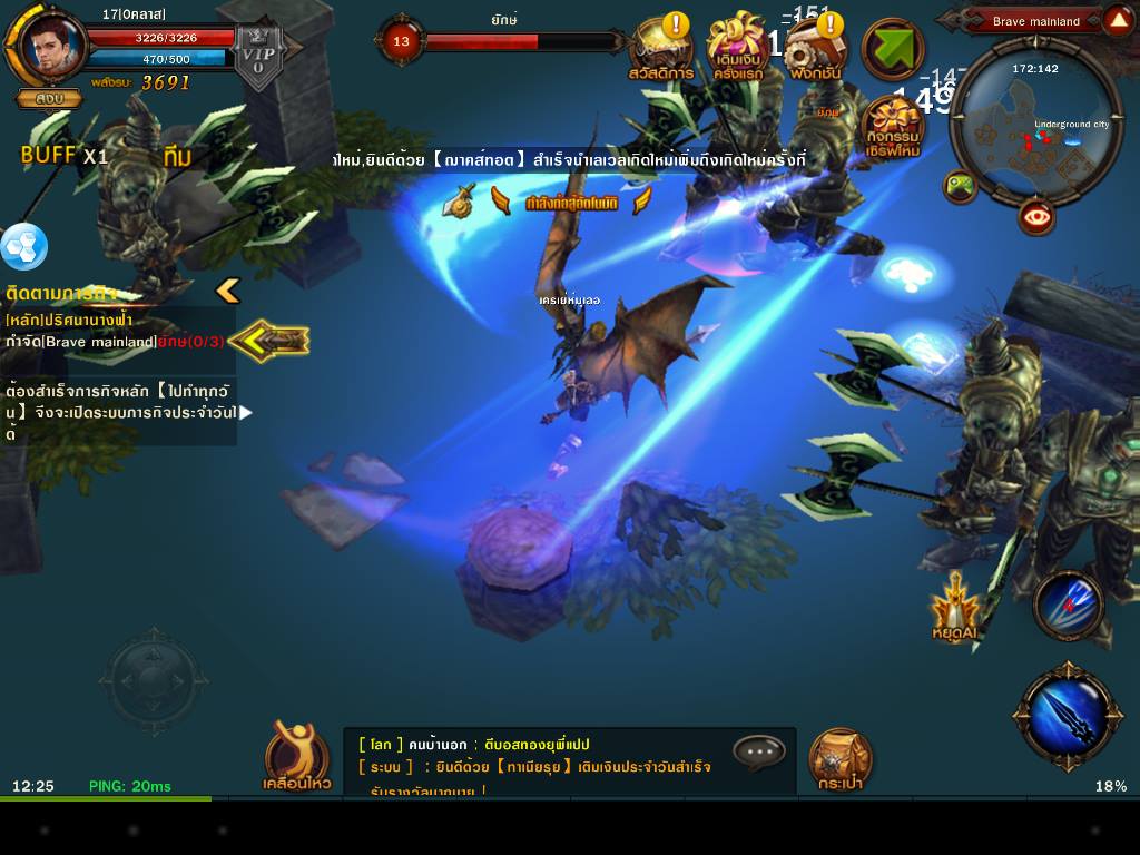 การต่อสู้นั้นผู้เล่นสามารถที่จะเลือกบังคับตามที่ถนัดเลยครับจะใช้เพียงคลิกเดียว หรือเลือกที่จะบังคับด้วยตัวเองก็ได้ ส่วนตัวพอลองบังคับเองดูแล้การบังคับด้วยตัวเองยังแปลกๆอยู่นะครับก็รอแพทแก้กันต่อไป สิ่งที่ผมชอบมากคงเป็นเรื่องเสียงพา กย์ของตัวละครรวมถึง NPC ภายในเกมครับซึ่งความพิเศษอยู่ที่เสียงพากย์เหล่านั้นจะเป็นเสียงไทยทั้งหมดเวลากดส่งเควสช่างได้อารมณ์ยิ่งนัก และสำหรับใครที่ขี้เกียจแต่อยากเลเวลอีพไม่ต้องห่วงนะครับเราสามารถตั้งค่า AI เมื่อไปแผ่นที่ที่เราต้องการได้เพียงเท่านี้ก็อัพเวลได้แบบสบายๆแล้วครับ แต่วิธีนี้ก็จะกินแบตมือถือของเรามากๆเลยนะครับ แต่เรื่องแบตหมดไวก็เป็นปกติของเราๆเหล่าเกมเมอร์อยู่แล้วดังนั้นไม่น่ามีผลอะไรมาก 555