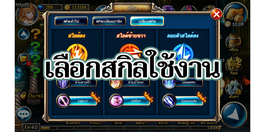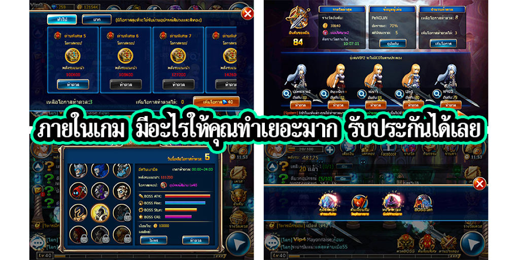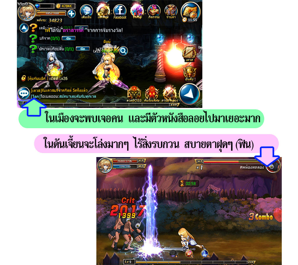| ด้านสายอาชีพ : ในช่วง OpenBeta วันแรกเปิด จะมีตัวละครให้เพื่อนๆ เลือกเล่น 3ตัวด้วยกัน ... เชื่อเหอะครับว่า ณ.จุดๆนี้ น้อยคนนักที่จะสนว่าพวก เขาและเธอนั้นมีอาชีพอะไร ใช้สกิลอะไรได้บ้าง ขอแค่เจ้าตากรรมการเป็นใช้ได้พอ โดยเมื่อคุณเลือกมาแล้วเล่นไปถึง Lv.40 คุณจะพบทางเลือก "อาชีพขั้นสูง" 1 ใน 2 อาชีพ สไตล์การเล่นแตกต่างกันเป็นอย่างมาก จุดหมายของเกม : จุดสูงสุดของเกมแนว Action จัดเต็มแบบนี้คงหนีไม่พ้นเรื่องของ "เสริมความแข็งแกร่งให้กับตัวละคร" เพื่อพิชิตดันเจี้ยนทั้งปกติและพิเศษ (ทุกด่าน), PVP ทุกประเภท, Event ทุกตัวภายในเกม ซึ่งแน่นอนว่าหากคุณสามารถทำได้ คุณจะได้รับสิ่งของพิเศษ มาเพิ่มพูน ความเทพ!! ให้กับตัวละครของคุณยิ่งขึ้นไปอีก |