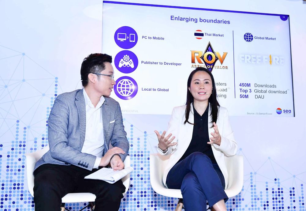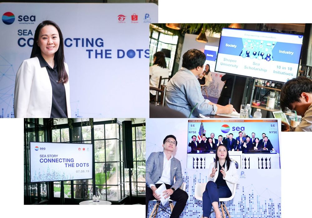 ‘Enlarge’ ขยายสัดส่วนของฐานผู้ใช้งาน ผ่านการพัฒนาผลิตภัณฑ์และบริการที่พร้อมส่งมอบผลิตภัณฑ์ที่พร้อมตอบโจทย์ไลฟ์สไตล์ผู้บริโภคที่เปลี่ยนแปลงอย่างรวดเร็ว เช่น การีนาสามารถขยายฐานเกมเมอร์ในประเทศไทย ผ่านสองการเปลี่ยนแปลงหลัก คือ 1. ขยายความสำคัญในการให้บริการจากเกมพีซีไปสู่เกมบนมือถือ ซึ่งการีนาได้ผลิตภัณฑ์เรือธงอย่างArena of Valor (RoV) เกมบนมือถือยอดนิยม มียอดลงทะเบียนในประเทศไทยกว่า 31 ล้าน เทียบเท่าเป็น 1 ใน 3 ของประชากรไทย และ 2.จากการเป็น Game Publisher สู่การเป็น Game Developer ซึ่ง เกม Free Fire คือเกมมือถือเกมแรกที่การีนาพัฒนาเองอย่างเต็มรูปแบบ ที่ได้รับความนิยมอย่างรวดเร็วและสามารถขยายฐานผู้เล่นเกมไปทั่วโลกโดยเฉพาะประเทศในแถบละตินอเมริกา เกม Free Fire มียอดดาวน์โหลดสูงถึง 450 ล้านครั้ง ทำให้ขึ้นแท่นสู่การเป็นเกมออนไลน์ Free to Play ที่มียอดดาวน์โหลดมากที่สุดเป็นอันดับ 3 ของโลก และยังมียอดผู้เล่นพร้อมกันสูงสุดถึง 50 ล้าน ผู้เล่นต่อวันอีกด้วย ‘Enable’ ทำให้เกิดการใช้งานจากผู้บริโภคในวงกว้าง ผ่านความเข้าใจตลาดและความต้องการของผู้ใช้งานที่แตกต่างกันในแต่ละประเทศ เช่น บนการีนาจากเกม Free Fire ที่ทำให้เกมกลายเป็น ‘Inclusive entertainment’โดยเกม ‘Free Fire’ ใช้เมมโมรี่น้อยลง โดยไม่ลดคุณภาพของเกมเพื่อสามารถดาวน์โหลดและเล่นได้ ตอบโจทย์กับความต้องการของเกมเมอร์ใน emerging marketสำหรับอีคอมเมิรซ์อย่างช้อปปี้ ใช้พรีเซ็นเตอร์เป็นดาราชั้นนำอันดับหนึ่ง เช่น ญาญ่า-ณเดชน์ แบมแบม GOT7 BLACKPINK ควบคู่กับกิจกรรม ‘Gamification’ ต่างๆ เพื่อนำไปสู่การรับรู้และใช้งานในวงกว้าง เช่น Shopee LIVE Shopee Quizและ Shopee Shake Shake โดยช้อปปี้ยังนำเหล่าดารามาร่วมกิจกรรม ดำเนินรายการ ชวนผู้ใช้มาเล่นเกม ส่งผลให้ระยะเวลาการใช้งานที่ผู้บริโภคใช้บนช้อปปี้ยาวนานขึ้น ไปจนถึงการ ‘Enable’ ทำให้เกิดเครือข่ายของผู้ประกอบการรายย่อยเพื่อยกระดับศักยภาพธุรกิจด้วยการใช้อีคอมเมิร์ซและเพิ่ม “ตัวเลือก” ให้ผู้บริโภค ผ่านผู้ขายที่มีเข้ามาในช้อปปี้มากขึ้น อีกด้วย ‘Empower’ สร้างความแข็งแกร่งให้อุตสาหกรรมที่เกี่ยวข้องและสังคมโดยรอบโดยมีแพลมฟอร์มของ Sea เป็นศูนย์การของแต่ละชุมชนไม่ว่าจะเป็น ทั้งในด้านของคอมมูนิตี้บนอุตสาหกรรมที่เกี่ยวข้อง และสังคมโดยรอบ เพื่อทำให้ระบบนิเวศของแต่ละอุตสาหกรรมแข็งแรงยิ่งขึ้น ไม่ว่าจะเป็น คอมมูนิลตี้ของผู้ประกอบการรายย่อยที่จะได้รับความรู้เพื่อพัฒนาศักยภาพในการดำเนินธุรกิจของกลุ่มผู้ค้าขายจาก Shopee University คอมมูนิตี้ภาคการศึกษาผ่านการสนับสนุนและพัฒนาความสามารถของคนรุ่นใหม่เมื่อเร็วๆนี้Sea ยังได้ร่วมมือกับจุฬาลง