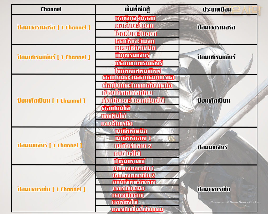 - Seige War จะจัดขึ้นทุกวันเสาร์ ช่วงเวลา 20.00 - เที่ยงคืน ซึ่งจะสามารถเข้าร่วมได้เมื่อ Guild ยึด