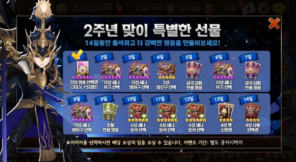 วันที่ 1 ฮีโร่อเวคเลเวล 30+5 เลือกได้ (ไม่รวมตัวพิเศษ)
