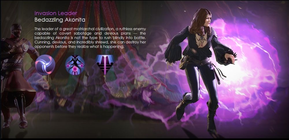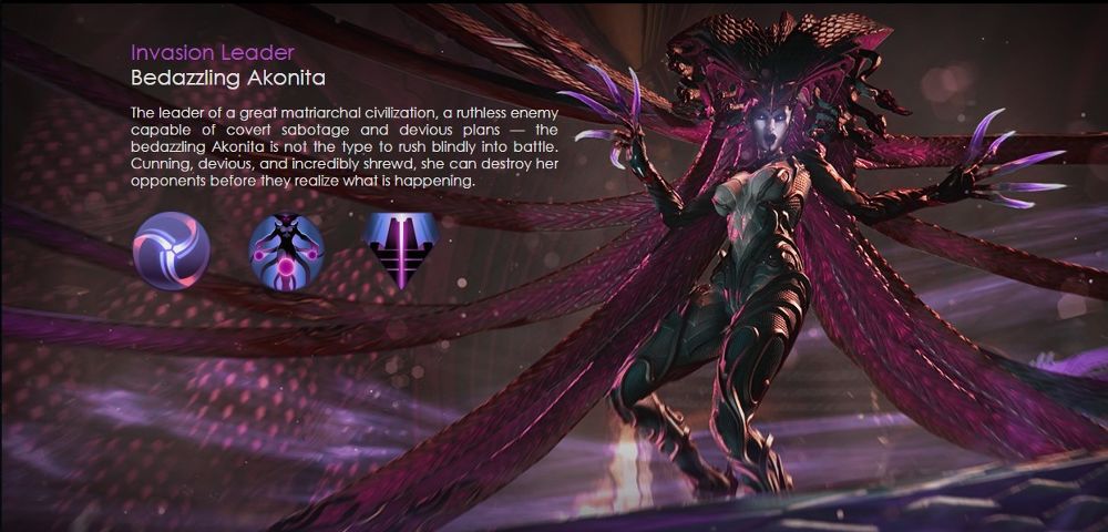 Akonita นั้นเป็นศัตรูตัวฉกาจที่ร้ายกาจที่สุดในขณะนี้เลยก็ว่าได้ สิ่งที่เธอต้องการก็คือการยืดครองดวงดาวต่างๆ เพื่อขโมยทรัพยากรอันมีค่า และจับผู้คนมาเป็นทาส และบัตนี้เธอได้มาถึงโลกแห่ง Skyforge แล้ว ผู้เล่นจะได้พบกับดันเจี้ยนใหม่ที่ตั้งอยู่บนยานอวกาศของเธอ ซึ่งมีนักรบอวกาศที่กระหายเลือดมากมาย อีกทั้งยังมีกับดักที่แสนอันตรายอีกเพียบ และต้องช่วยกันต่อกรกับ Akonita เพื่อป้องกันไม่ให้เกินภัยพิบัติต่อโลกแห่ง Skyforge
