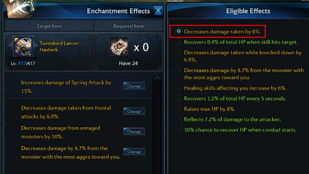 - ลดดาเมจที่ได้รับจากากรโจมตีมอนสเตอร์ที่ถูกคุณยั่วยุ 8.7%