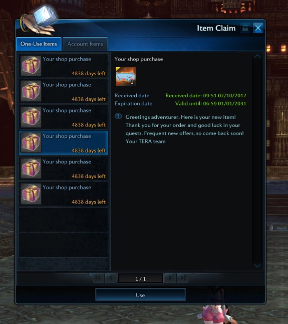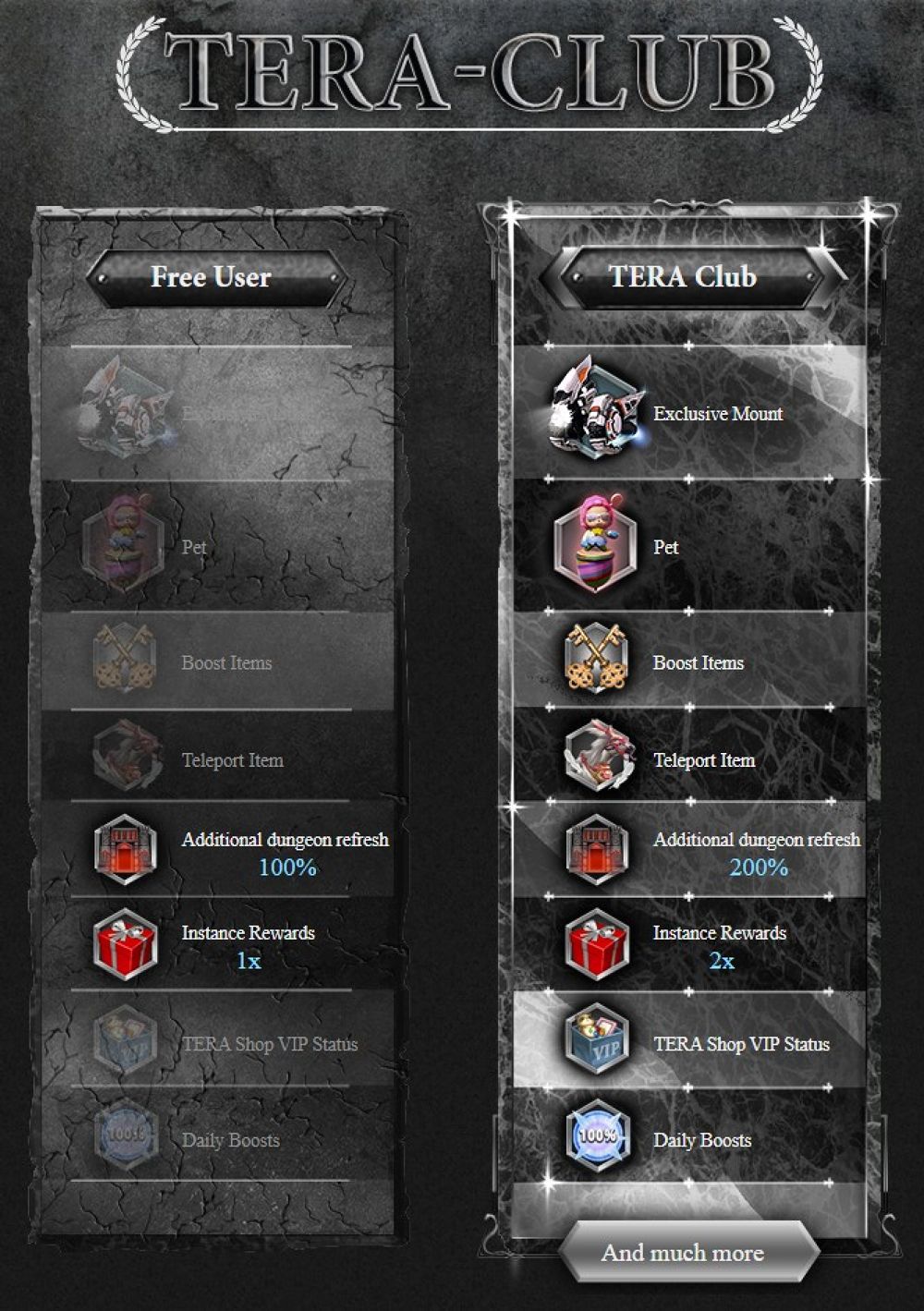 Tera Club จะได้รับไอเทมต่าง ๆ มากมาย ดังนี้
