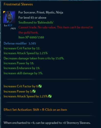 - High Tier : Set Frostmetal จะอัพเกรดได้สูงสุดที่ +9