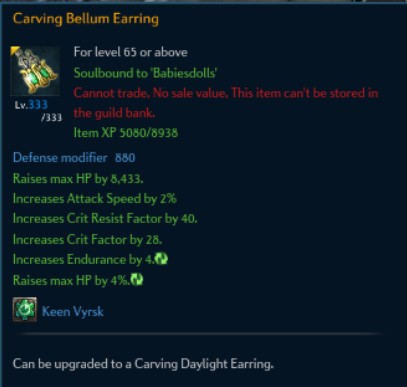 ต่างหู ( ใส่ได้ 2 ชิ้น ) : จะมีให้เลือกอยู่ 2 แบบด้วยกัน คือสาย Power และสาย Crit ควรเลือกใช้ให้เหมาะสม จะเพิ่มพบัวป้อวกัน Max HP ค่าการป้องกันคริติคอล ส่วนออพชั่นจะเป็น เพิ่ม Max HP กับเพิ่มค่า Endurance หรือความถึก นั้นเอง