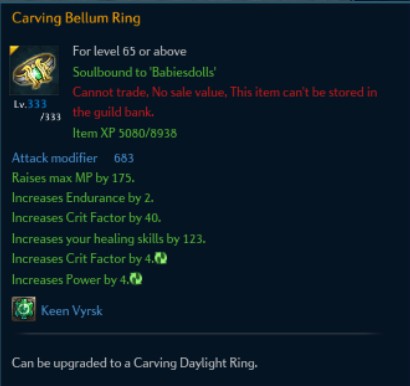 แหวน ( ใส่ได้ 2 ชิ้น ) : มีให้เลือก 2 แบบเช่นเดียวกับต่างหูครับ คือ Power และ Crit จะเน้นเพิ่มพลังโจมตี Max MP ความสามารถในการฟื้นฟูจากฮีลลิ่งสกิล ออพชั่นจะเน้นไปการเพิ่มค่าสถานะของ Power และ Crit