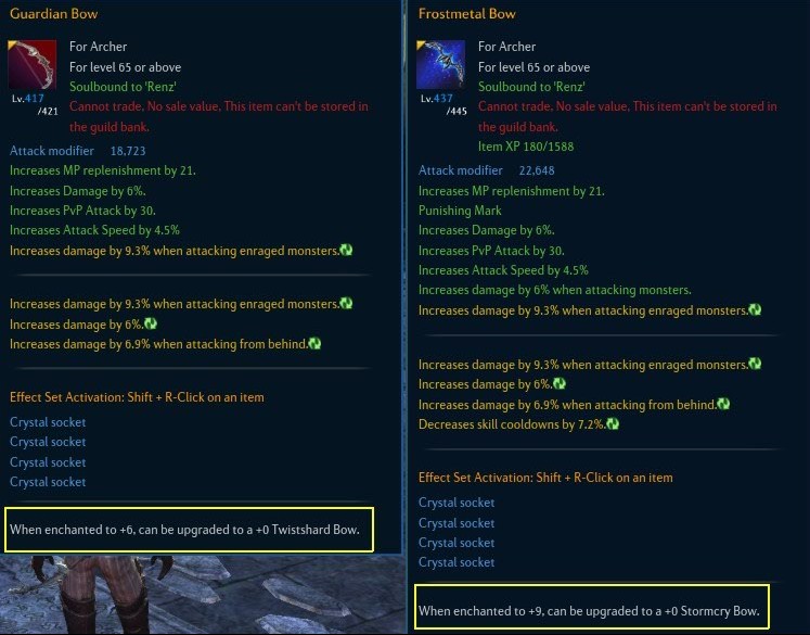 เมื่อได้รับเซ็ตการ์เดี้ยนมาแล้ว ให้เราลงดันเจี้ยนหาแร่ต่าง ๆ เพื่อมาอัพเกรด ตีบวกไอเทมให้สูงขึ้น และเมื่อทำการตีบวกได้สูงสุดของระดับไอเทมแล้ว จะทำการเลื่อนขั้นได้ เช่น อาวุธ Guardian's +6 สูงสุด จะทำการเลื่อนเป็น Twistshard ได้นั้นเองครับ