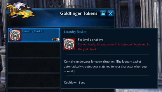 ชุดชั้นในเราจะได้รับจากเควสระดับต้นที่เป็นสีเขียว ในช่วงเลเวล 30 และจะได้รับอีกที่เป็นสีน้ำเงินจากคูปองที่ได้จากการแจกเซ็ตการ์เดี้ยนตอนเลเวล 65 และถ้าเราอยากได้เพิ่มให้ผู้เล่นทำการลงดัน ACE Dungeons ครับ เป็นดันเจี้ยน Solo สำหรับฝึกตัวละครผู้เล่น มีภารกิจท้าทายให้เราเล่น และเมื่อลงเสร็จแล้วจะได้เหรียญ Goldfinger Token เมื่อสะสมครบ 80 ชิ้น สามารถนำไปแลก ชุดชั้นในได้ ซึ่งจะแลกเป็นกล่องสุ่ม แต่จะสุ่มได้สีฟ้าแน่นอน แต่ต้องมาลุ้นออพชั่นเอาเองครับ ส่วนชุดชั้นในสีทองนั้น มีขายใน TERA SHOP