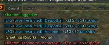 ตัวอย่าง LFG > SC tank/dps แปลว่า กำลังหาคนเข้าตี้ ดันเจี้ยน SC ต้องการแท้งค์ และดาเมจ