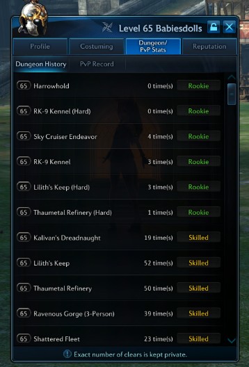 สถานะ Rookie และ Skilled สามารถกดตัว P แล้วไปดูได้ที่แทบ Dungeon/PvP stats