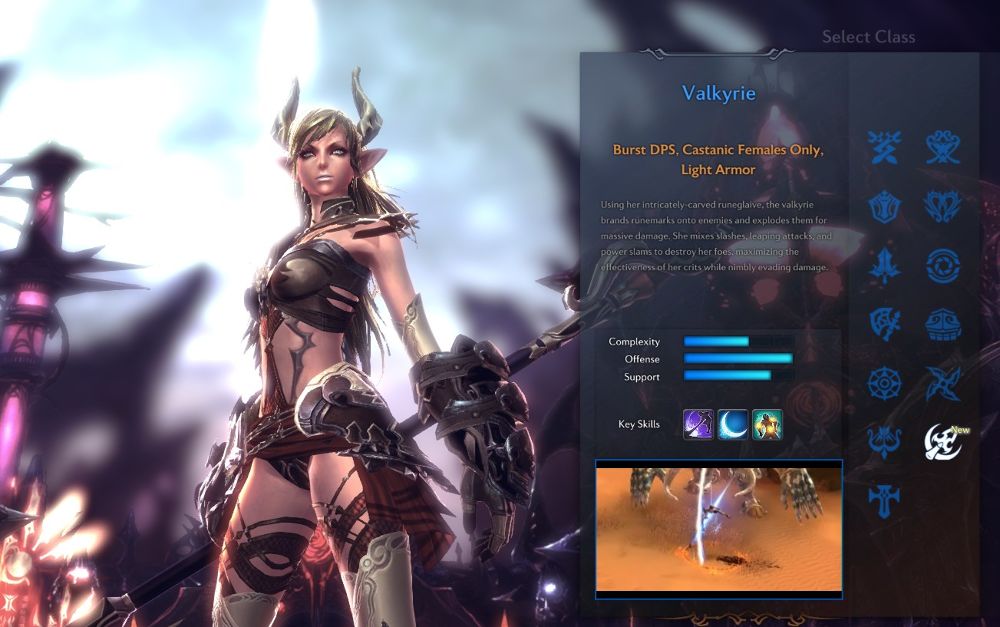 ให้เลือกเล่นระหว่าง Castanic หรือ High Elf ครับ ถ้าเพื่อน ๆ เลือก Castanic จะเน้นไปที่การทำดาเมจโดยตรง ส่วนถ้าเลือกไปในเผ่า High Elf จะเน้นการโจมตีแบบต่อเนื่อง เพราะมีความสามารถในการฟื้นฟู MP ที่ดี อันนี้แล้วแต่ชอบเลยครับ ไม่ได้แตกต่างกันมากในเรื่องของสกิลเผ่า