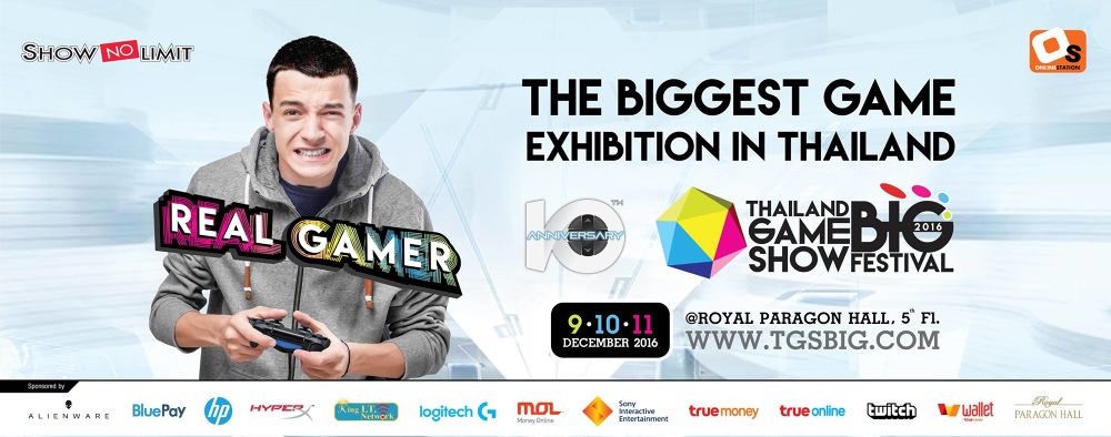 เตรียมพบกับมหกรรมเกมสุดยิ่งใหญ่แห่งปี THAILAND GAME SHOW BIG FESTIVAL 2016 ภายใต้คอนเซ็ปต์ “REAL GAMER” ครบรอบ 10 ปี พบกิจกรรมพิเศษเพื่อคอเกมทุกรุ่นทุกวัย 10 ไฮไลท์เด็ดและความสนุกตลอด 3 วันเต็ม เกมเมอร์ตัวจริงไม่ควรพลาด ระหว่างวันที่ 9 - 11 ธันวาคม 2559 นี้ ณ รอยัล พารากอน ฮอลล์ ชั้น 5 ศูนย์การค้าสยามพารากอน ตั้งแต่เวลา 10.00 - 20.30 น. ติดตามข้อมูลความเคลื่อนไหวได้ที่