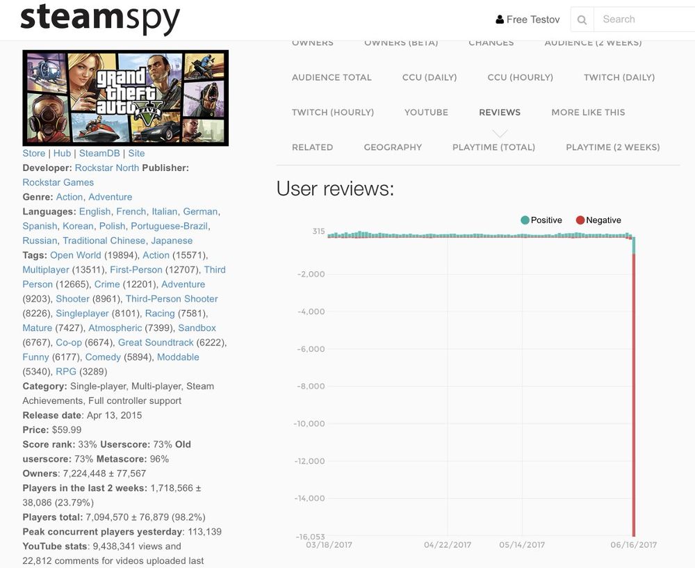 รวมไปถึงยอดผู้เล่นที่ไปให้คะแนนติดลบของเกม Grand Theft Auto V จนกลายเป็นเกมที่ไม่น่าเล่น