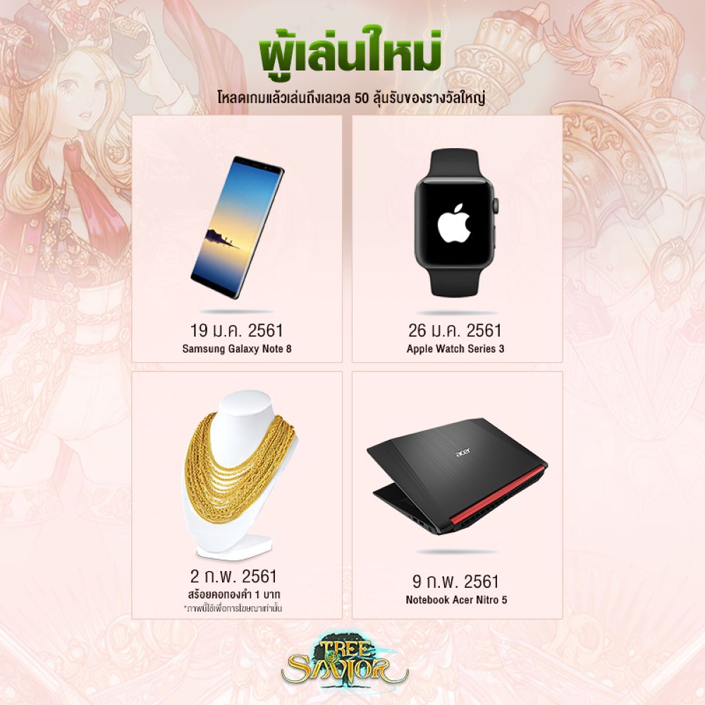 ลุ้นที่ 1 Samsung Galaxy Note8, Apple Watch Series 3, สร้อยคอทองคำ 1 บาท และ Notebook Acer Nitro 5