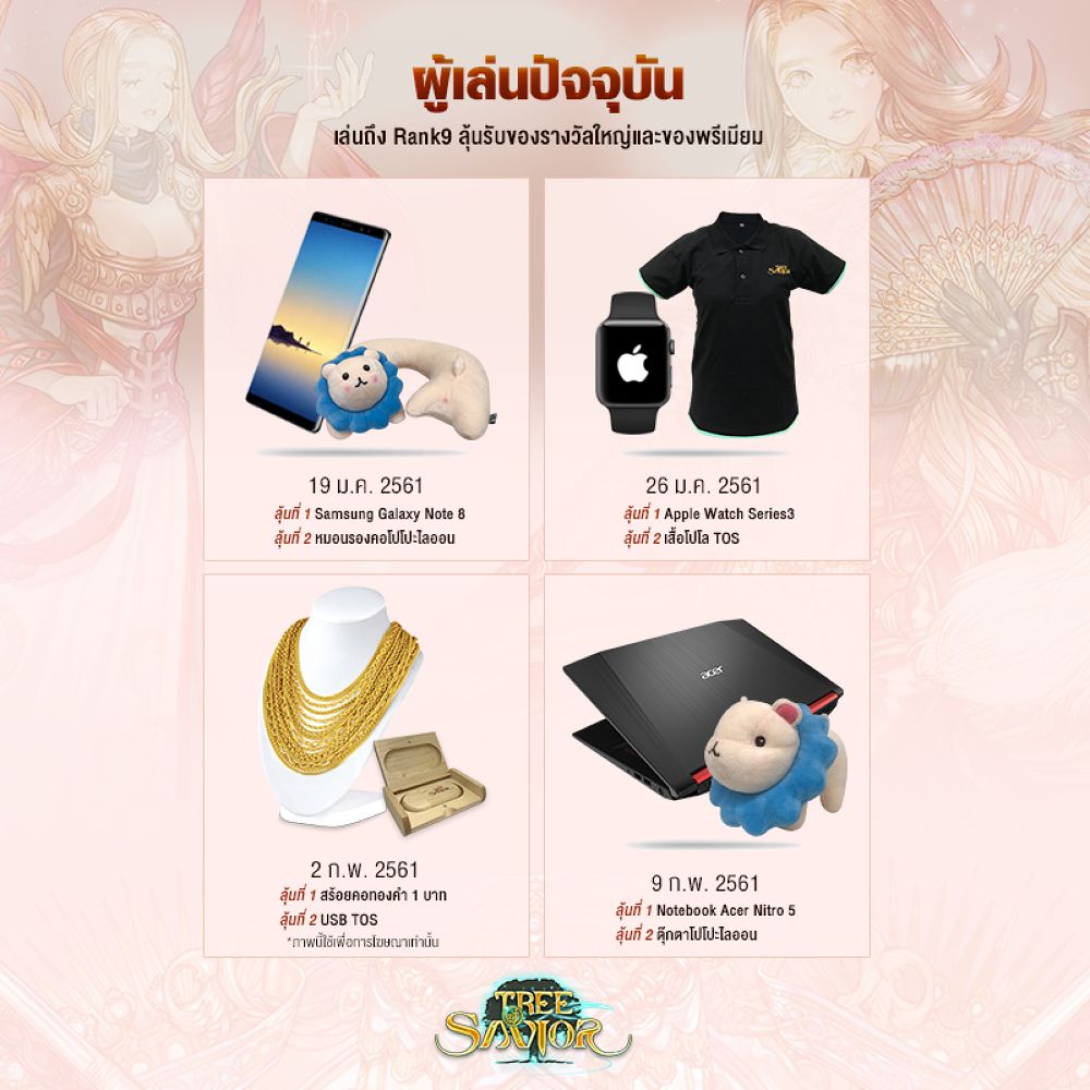 ลุ้นที่ 2 ของพรีเมียมสุดน่ารักจากเกม Tree of Savior กว่า 40 รางวัล ทั้งหมอนรองคอโปโปะไลออน, เสื้อโปโล TOS, USB TOS และตุ๊กตาโปโปะไลออน