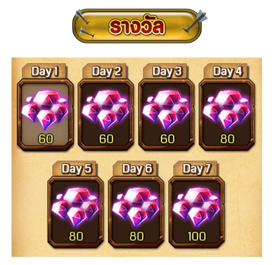 ** ผู้เล่นจะเริ่มวันที่ 1 อีกครั้งหากไม่ได้ล็อคอินต่อเนื่อง **