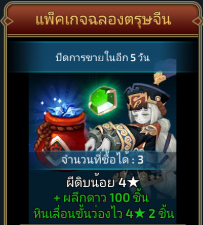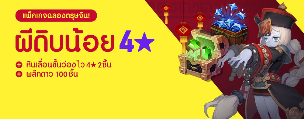 - นอกจากนี้ ยังมีแพ็คเกจพิเศษลงในเกม ที่มีทั้งผลึกดาวกว่า 100 ชิ้น, ผีดิบน้อย ระดับ 4 ดาว และหินเลื่อนขั้น เพื่อเป็นการต้อนรับเทศกาลตรุษจีนด้วย