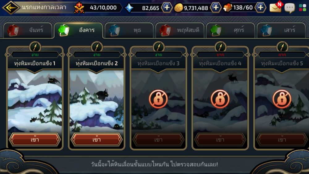 : ซึ่งจะมีทั้ง นรกแห่งกาลเวลา ผู้เล่นสามารถสะสมวัตถุดิบในการอัพเกรดตัวละครเพื่อเลื่อนขั้น รวมไปถึงวัตถุดิบข้ามขีดจำกัด และวัตถุดิบสำคัญอื่น ๆ ได้จากโหมดนี้, รอยแยกแห่งโชคชะตา สามารถลุ้นรับเงินรางวัลได้ในอัตราที่แตกต่างกันออกไป โดยขึ้นอยู่กับความโชคดีของผู้เล่น, แม่น้ำสายอัคคี เป็นระบบการทอยลูกเต๋าเพื่อเสี่ยงดวง ว่าจะตกไปที่ช่องสมบัติเพื่อรับไอเทม หรือจะตกไปที่ช่องต่อสู้เพื่อต่อสู้กับศัตรูแบบสุ่ม ถ้าต่อสู้ชนะก็มีโอกาสได้ไอเทมเด็ด ๆ อีกด้วย