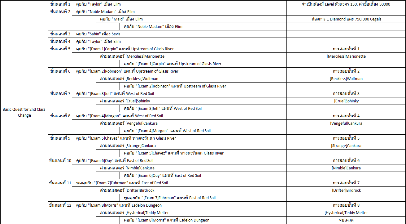 รูปแบบของการเปลี่ยนอาชีพคราส 2ก็ไม่แตกต่างจากอาชีพอื่น คือสามารถเปลี่ยนได้ตอนเลเวล 150 มีค่าชื่อเสียง 50000 ขึ้นไปโดยมีขั้นตอนทั้งหมด 14 ขั้นตอน แยกเป็น 2 ส่วนดังนี้