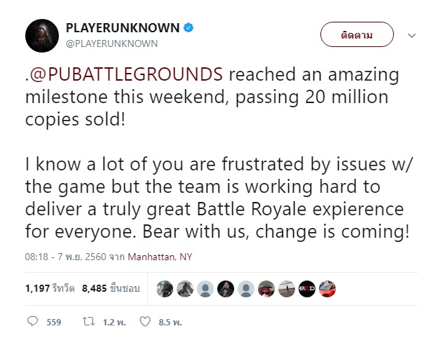 ของเขาดี!!! Bluehole เผยตอนนี้ตัวเกม PUBG ทำยอดขายทะลุ 20 ล้านชุดแล้ว