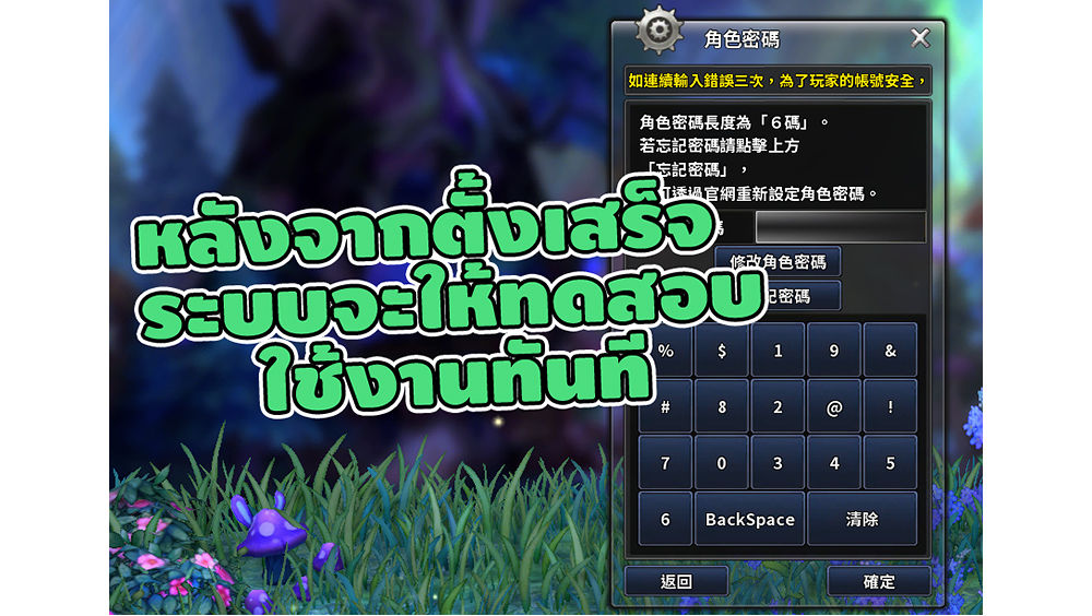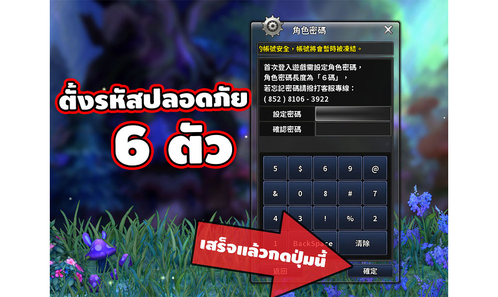 4. หลังจากตั้งรหัสปลอดภัยเสร็จสิ้น ระบบจะให้เราทดลองกรอกรหัสดังกล่าวอีกครั้งทันที (กรอกผิดเกิน 3ครั้ง ไอดีจะโดนล็อคโปรดระวังไว้ด้วย)