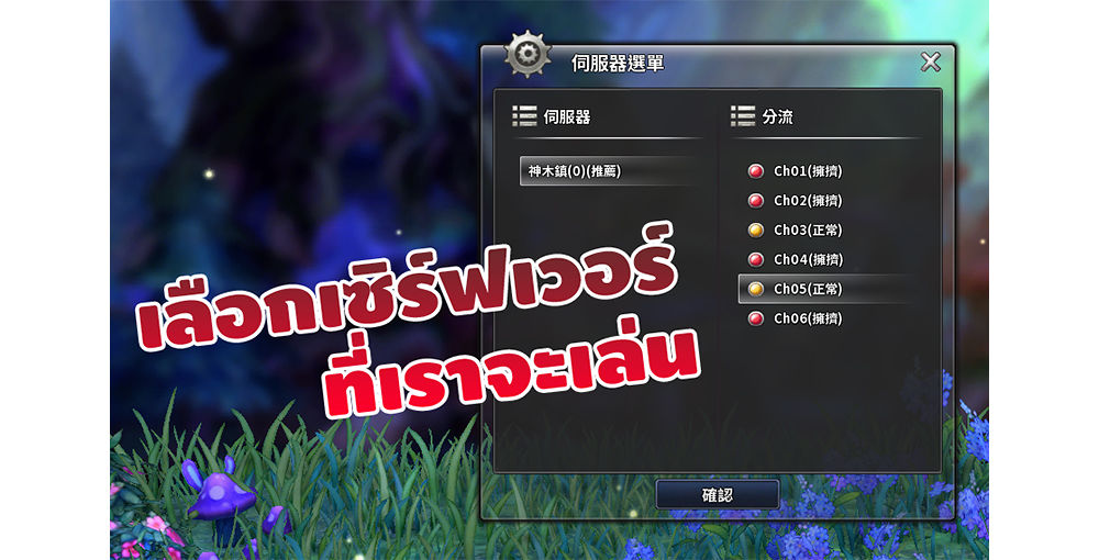2. เลือกเซิร์ฟเวอร์ที่เราจะเล่น Channal ไหนก็ได้ เพราะสามารถย้ายไป-มาได้ (ขณะทำไกก์มีเซิร์ฟเวอร์เดียว)