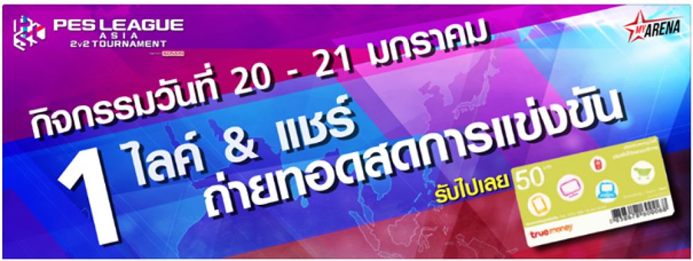 1.ไลค์&แชร์รายการถ่ายทอดสด PES LEAGUE ASIA 2v2 TOURNAMENT ที่จะมีในวันที่ 20 - 21 มกราคม แบบสาธารณะ ทายผลประเทศที่คิดว่าจะได้ชัยชนะพร้อมใส่ #PESLEAGUEASIA