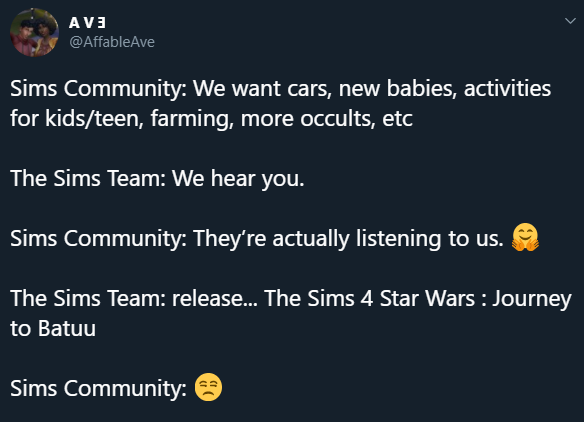 แต่มันก็กลับสร้างความไม่พอใจให้เหล่าชาวแฟนๆ The Sims อย่างมาก จนมีการกดดิสไลค์คลิปเปิดตัวไปมากถึง 4.5 หมื่นคน สูงกว่ายอดไลค์ 2.3 หมื่นคนไปเรียบร้อยแล้ว แถมยังมีแฟนๆ ไปแสดงความไม่พอใจบนที่อื่นเป็นจำนวนมากด้วย!