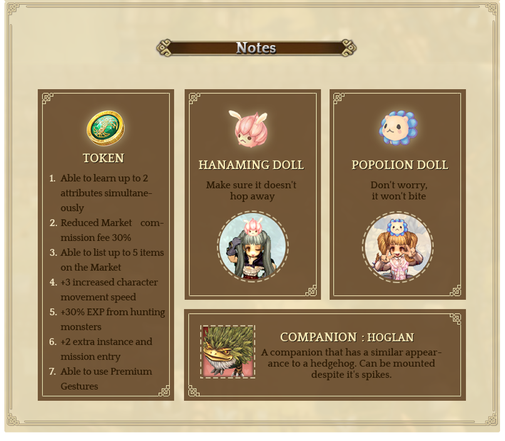 - สำหรับผู้ที่เลือกแพคเกจแรกจะได้รับคูปองสำหรับแลก Companion Hoglan ได้ที่ Npc ขาย Companion