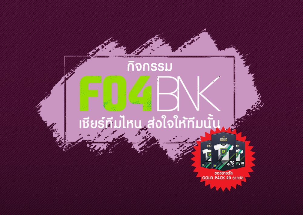 - คอมเมนท์ใต้โพสต์กิจกรรมนี้ในเพจ ea sports fifa online 4 thailand หากเชียร์ทีม A พิมพ์ #FO4BNKTeamA (พร้อมชื่อผู้จัดการทีม + UID Garena) หากเชียร์ทีม B พิมพ์ #FO4BNKTeamB (พร้อมชื่อผู้จัดการทีม + UID Garena)