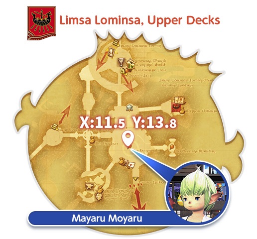 NPC: Mayaru Moyaru (Limsa Lominsa,Upper Decks พิกัด X:11.5 Y:13.8)
