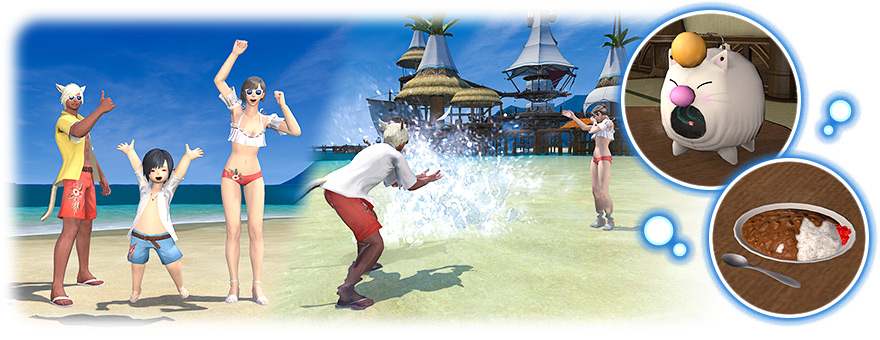 ของรางวัล: เซ็ตว่ายน้ำ Endless Summer Coffer ประกอบไปด้วยแว่นกันแดด เสื้อ กางเกง และรองเท้า , Emotes กวักน้ำ(Splash) , ไอเท็มตั้งโต๊ะสุดน่ารักอย่าง ที่ดักยุงม็อค (Mosquito Moogle) และ จานข้าวแกงกระหรี่สุดเก๋ (Curry Plate)